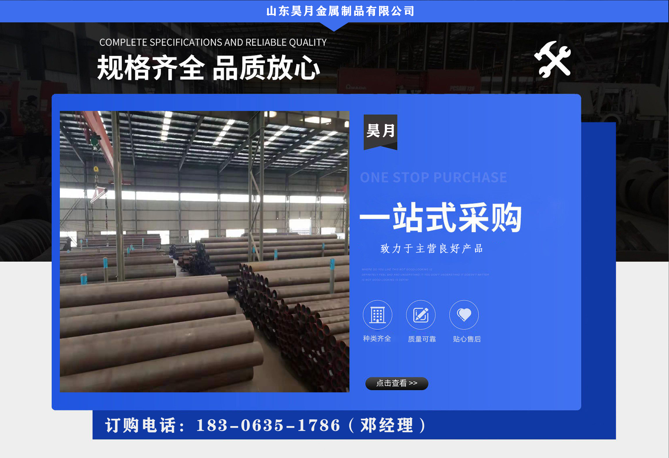 山東昊月金屬制品有限公司是一家鋼材企業(yè)。經(jīng)營ND鋼管,ND無縫鋼管,考登鋼管,09CrCuSb鋼管,空氣預(yù)熱器用耐酸鋼管等。 服務(wù)宗旨:來到無貨包損失、貨不滿意不裝車、辦完手續(xù)再付款 本公司全體員工向關(guān)心和支持我們的各級領(lǐng)導(dǎo)和各界朋友表示誠摯的謝意! 始終堅持以市場為導(dǎo)向,不斷壯大企業(yè)規(guī)模,提升企業(yè)核心競爭能力,力圖在短時間內(nèi),創(chuàng)造注漿管品牌,提供滿意的服務(wù)。 公司經(jīng)理攜全體員工恭候各地新老賓客光臨本鋼管供應(yīng)公司,實地考察、指導(dǎo)工作、增進了解! 歡迎前來咨詢合作!...